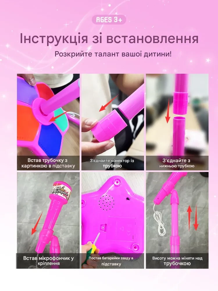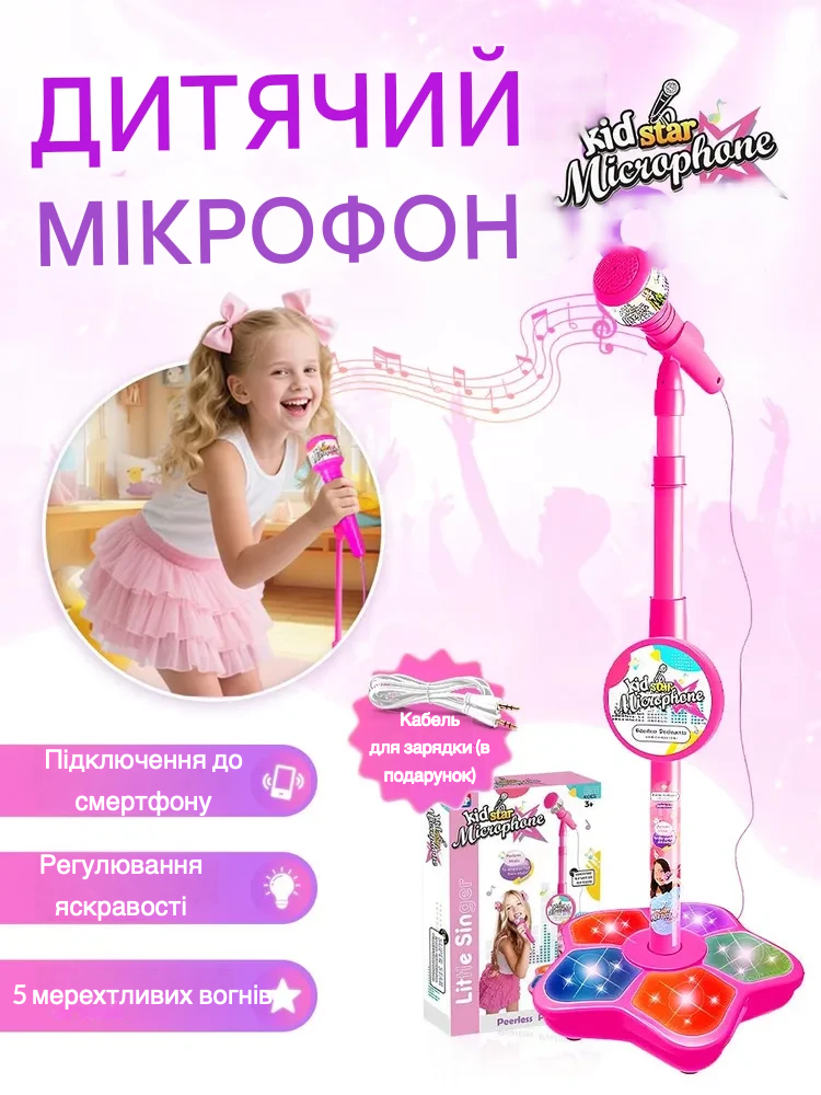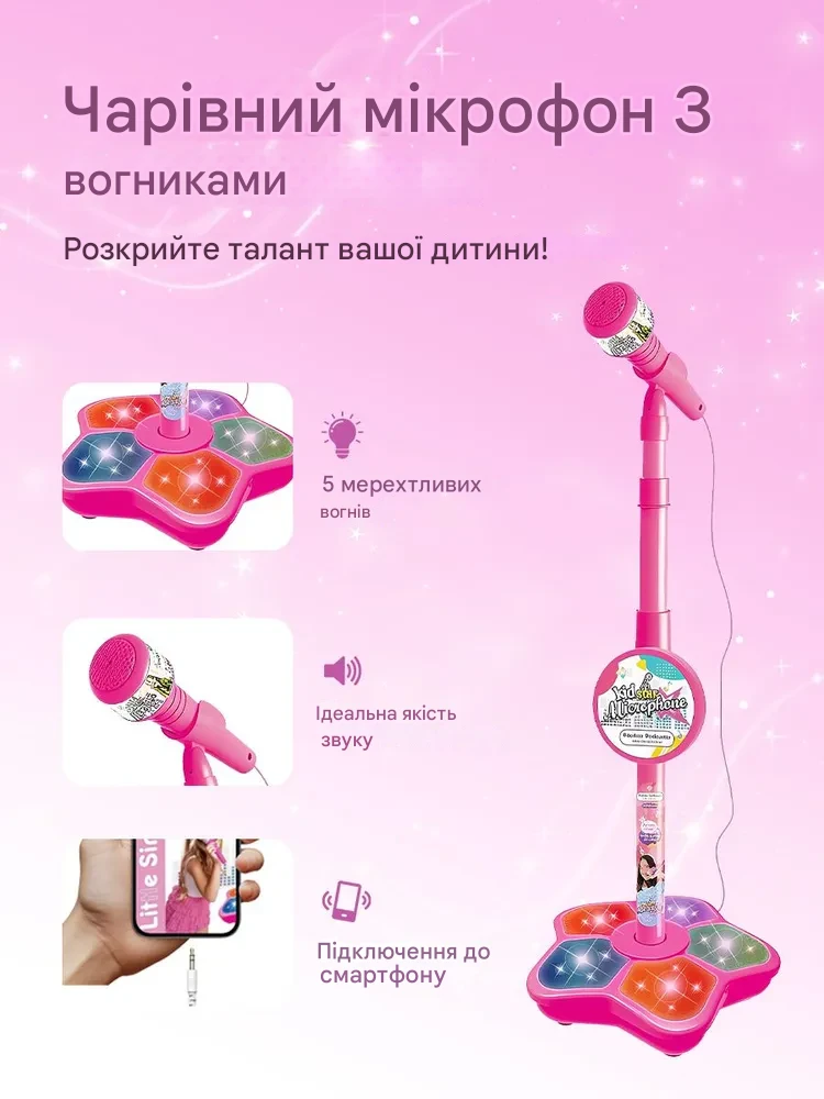 Дозволяє підлаштувати мікрофон під зріст дитини — підходить як для маленьких, так і для старших діток.